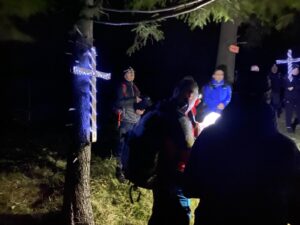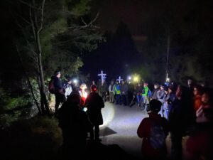 Bezpieczeństwo jest kluczowe, zwłaszcza podczas nocnego marszu, więc należy zadbać o widoczność. Przypominamy, że poruszanie się w nocy zwiększa ryzyko na drodze. Na trasie, zwłaszcza na fragmentach prowadzących poboczem jezdni, trzeba przestrzegać przepisów ruchu drogowego. Ważne jest także rozważne zajmowanie miejsca na stacjach i postojach, aby umożliwić innym udział w rozważaniach i modlitwie. Należy zachować szczególną ostrożność na błotnistych i śliskich odcinkach trasy.